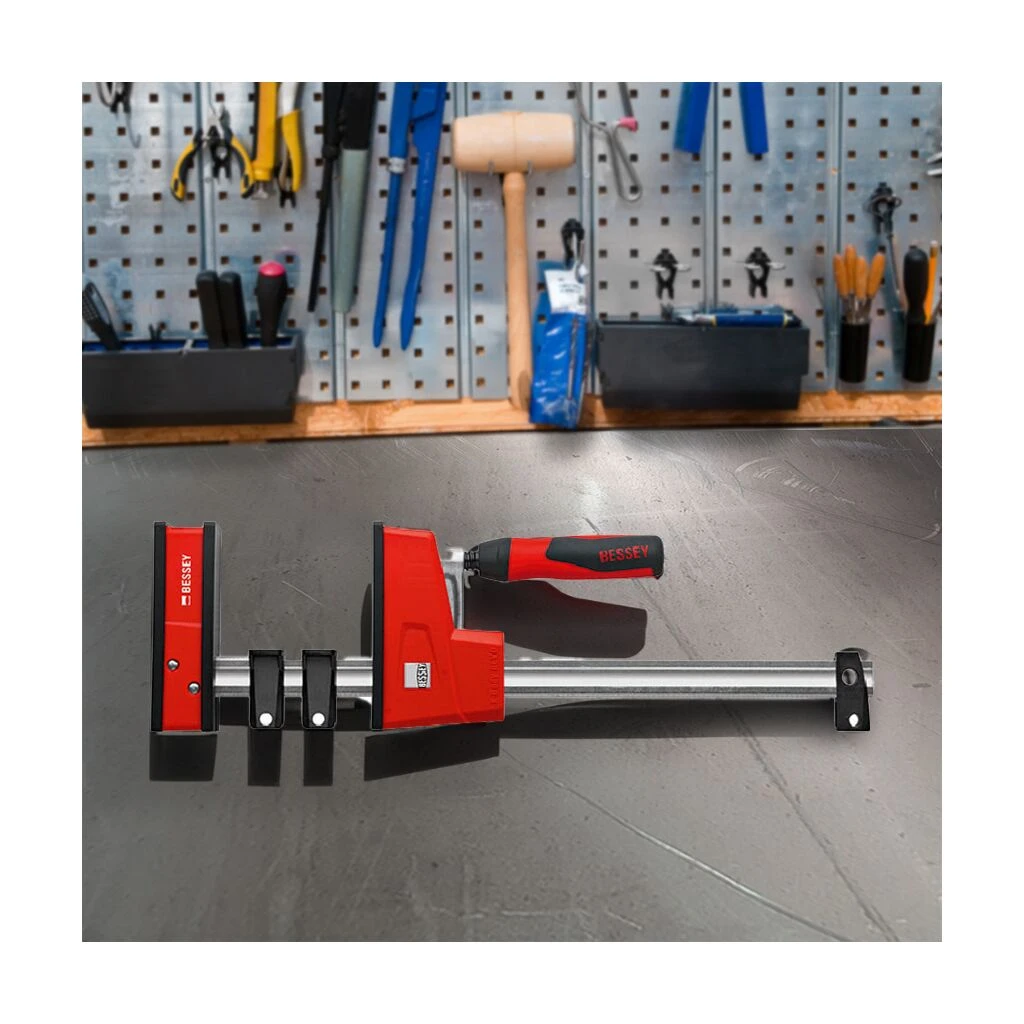 Metallverstärktes Kunststoffgehäuse und optimierter Gleitbügel mit doppelter Rutschsicherung für mehr Power und Sicherheit: Die eingestellte Spannkraft wird gehalten und im ungespannten Zustand kann der Gleitbügel nicht unbeabsichtigt abrutschen.