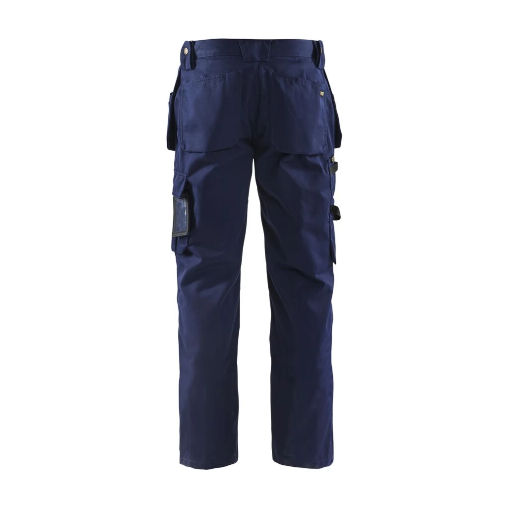 Zwei Gürtelschlaufen an den Seiten mit einem Knopf für eine Hammerschlaufe, eine Gürtelschlaufe mit D-Ring vorne. Breite Gürtelschlaufe hinten