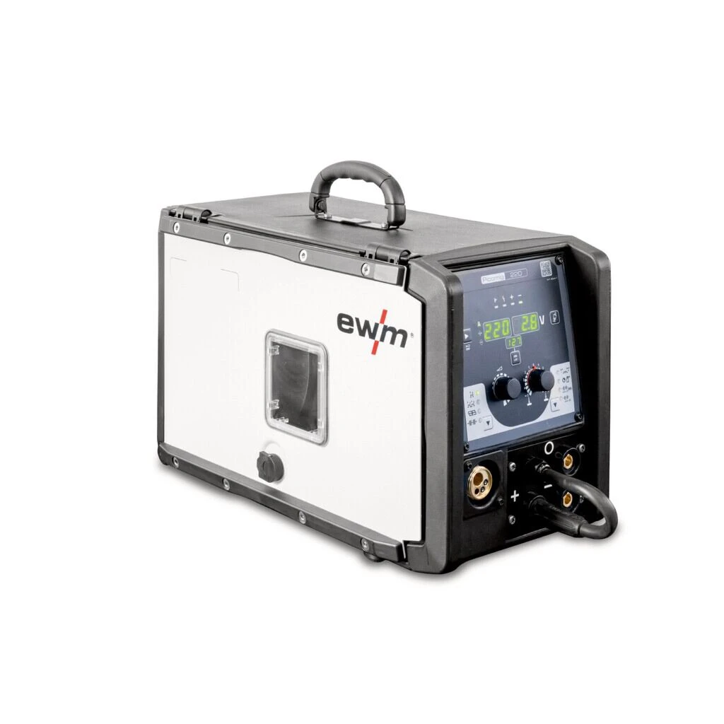 kompakt, tragbar, Euro-ZA, mit PFC-Modul, für 5 kg D200-Spulen Hocheffiziente Stromaufnahme dank integrierter PFC-Technologie (Power Factor Correction-Technologie) Schweißverfahren: MSG-Standardschweißen, Kennlinien für Stahl, CrNi, CuSi, Aluminium und Fülldrähte, E-Hand-Schweißen und WIG-Liftarc-Schweißen Optimal zum Schweißen von selbstschützenden Fülldrähten Stufenlos einstellbare Lichtbogendynamik (Drosselwirkung) 2-Takt-/4-Takt-Betrieb Intervall-Schweißen Einstellbare Gasvor- und Gasnachströmzeit Ihre Vorteile Tragbar, kompakt Kein Zukauf von Kennlinien, alle Kennlinien für diesen Maschinentyp sind ab Werk im Lieferumfang enthalten Robustes, baustellengerechtes Gehäuse Hohe Leerlaufspannung für sehr gute Zündeigenschaften 4-Rollen-Antrieb Stromsparend durch hohen Wirkungsgrad und Standby-Funktion Einfacher, werkzeugloser Wechsel der Schweißpolarität Isolierter Drahtraum 3,5 m Netzzuleitung mit 16 A Schuko-Stecker Kostenloses WPQR-Paket zur Zertifizierung bis einschließlich EXC2 nach EN 1090 und zum Schweißen von unlegierten Stählen bis einschließlich S355 Überspannungsschutz: Keine Beschädigung des Gerätes durch versehentlichen Anschluss an 400 V Netzspannung