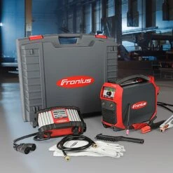 Tragbares, modulares WIG-AC/DC-Inverterschweißgerät in gasgekühlter Ausführung mit elektronischer HF-Zündung.