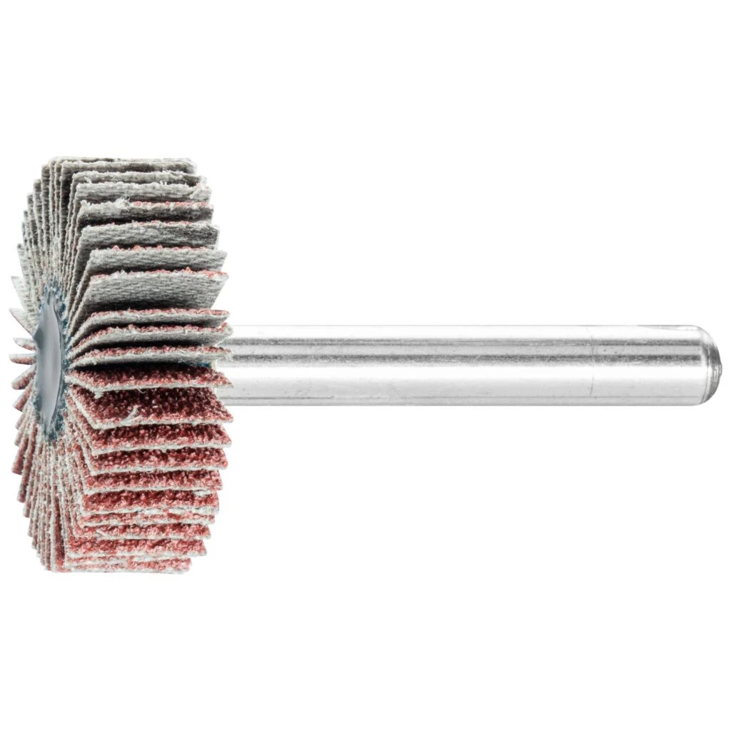 Bei Fächerschleifern sind die Lamellen aus Schleifmittel auf Unterlage fächerförmig radial um die Achse des Werkzeuges angeordnet. Durch ihre Flexibilität passen sie sich ideal den Konturen des Werkstückes an. Das Schleifkorn ist in eine Kunstharzbindung auf dem zugfesten, flexiblen Gewebeträger eingebettet. Fächerschleifer werden in ISO 3919 unter der Bezeichnung „Lamellenschleifstifte“ geführt. Für den universellen Einsatz von Grob- bis Feinschliff.