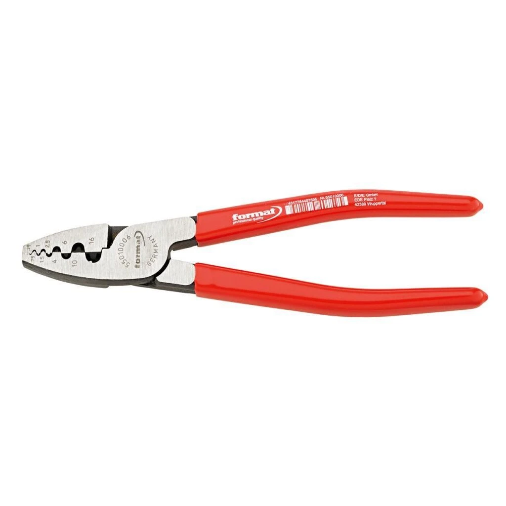 Anwendung: Zum zuverlässigen Verpressen (Halbrundpressung) von Aderendhülsen DIN 46228 (Teil 1 + 4), mit Kunststoffkragen.