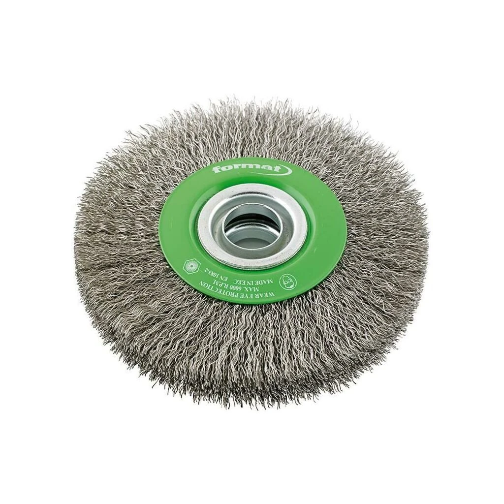 Anwendung: Zur Aufnahme in stationäre Maschinen. Für den Einsatz bei leichten bis mittelschweren Reinigungsarbeiten und zur Bearbeitung von großen Flächen. Zum Aufrauen und Mattieren sowie zum Entfernen von Farbe, Lack, Grat, Rost, Zunder etc.