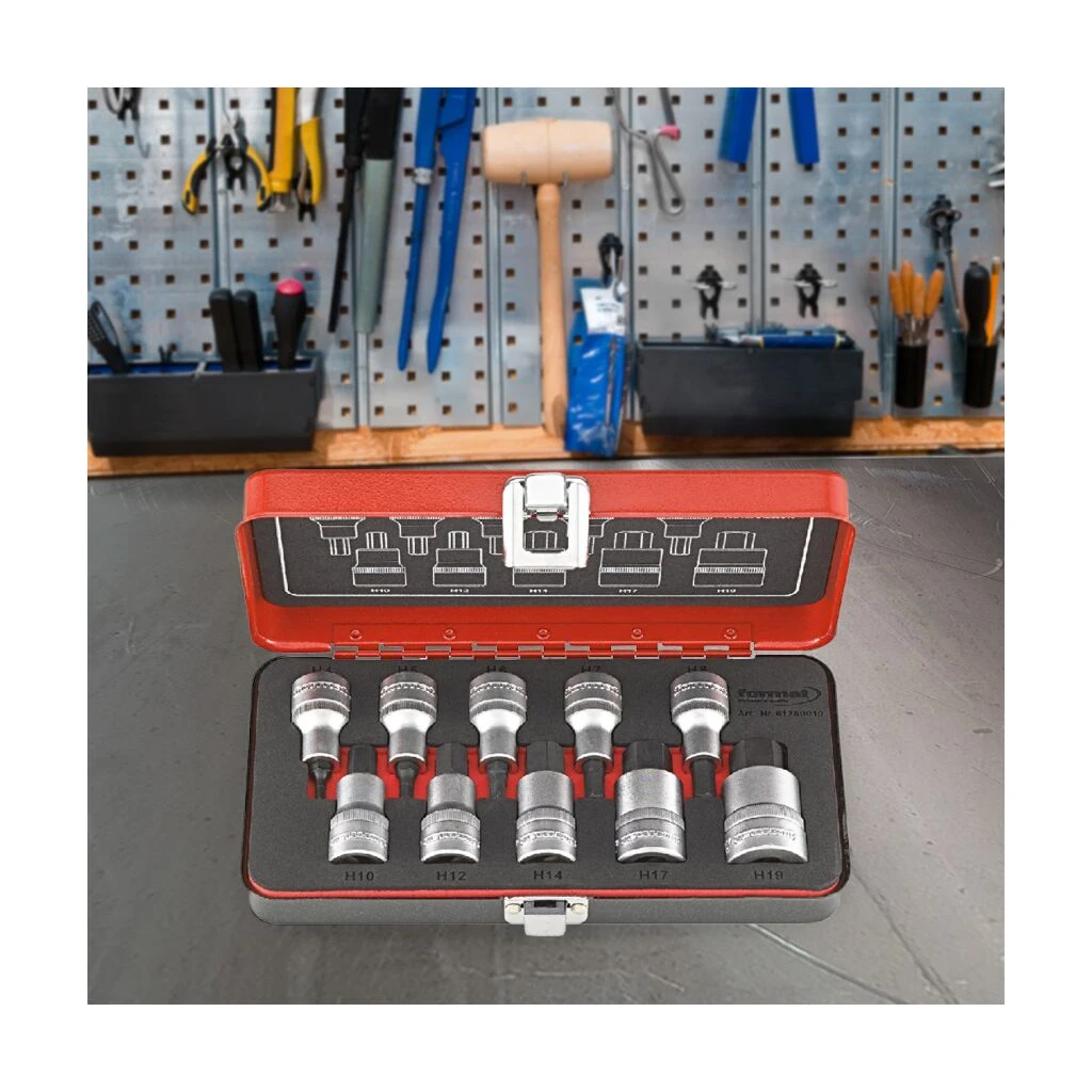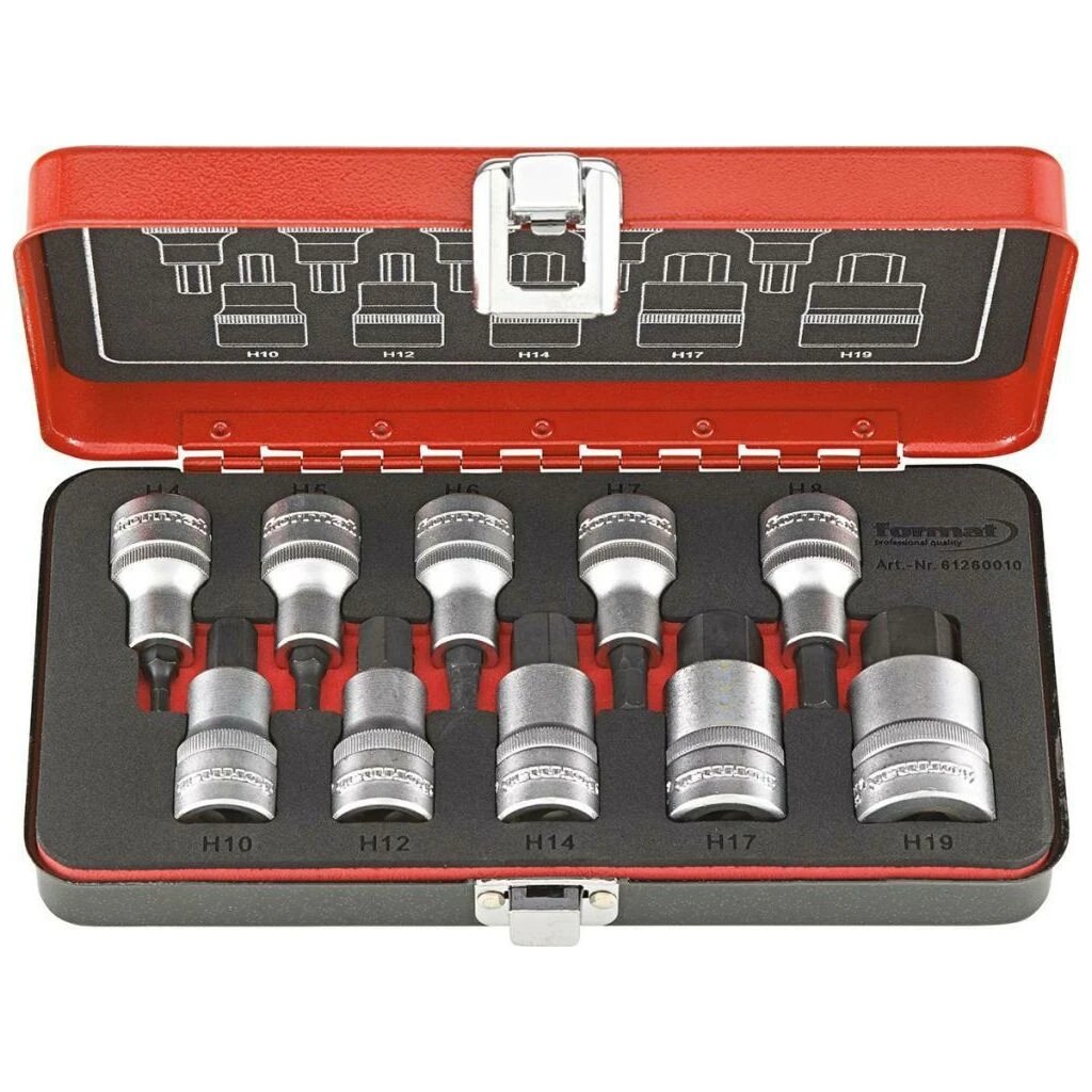 Ausführung: DIN 74221, mit Kugelfangrille und griffiger Rändelung. Aus Chrom-Vanadium-Stahl, verchromt, Spitze brüniert. Lieferung im stabilem Metallkasten mit schematischer Platzierungsangabe im Deckel. Die Werkzeuge sind sicher in einer 2-farbigen Schaumstoffeinlage untergebracht, somit werden fehlende Werkzeuge sofort erkannt.