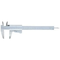 Ausführung: Aus rostfreiem Stahl, gehärtet, Ableseteile und Nonius matt verchromt. Rückseite mit Gewindetabelle. Lieferung im Kunstlederetui.
