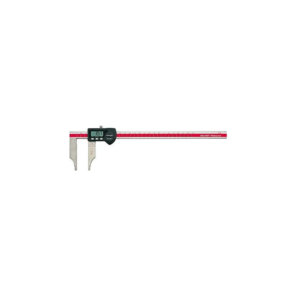 Ausführung: Aus rostfreiem Stahl, gehärtet, Messflächen feinst geschliffen, mit Feststellschraube, Ziffernhöhe der LCD-Anzeige 10 mm bei 300 mm und 12,5 mm ab 500 mm Messbereich, mit Datenausgang variabel RS232, USB und Digimatic (DATA Variable). Lieferung mit Batterie CR2032, 3 V, im Holzkasten.