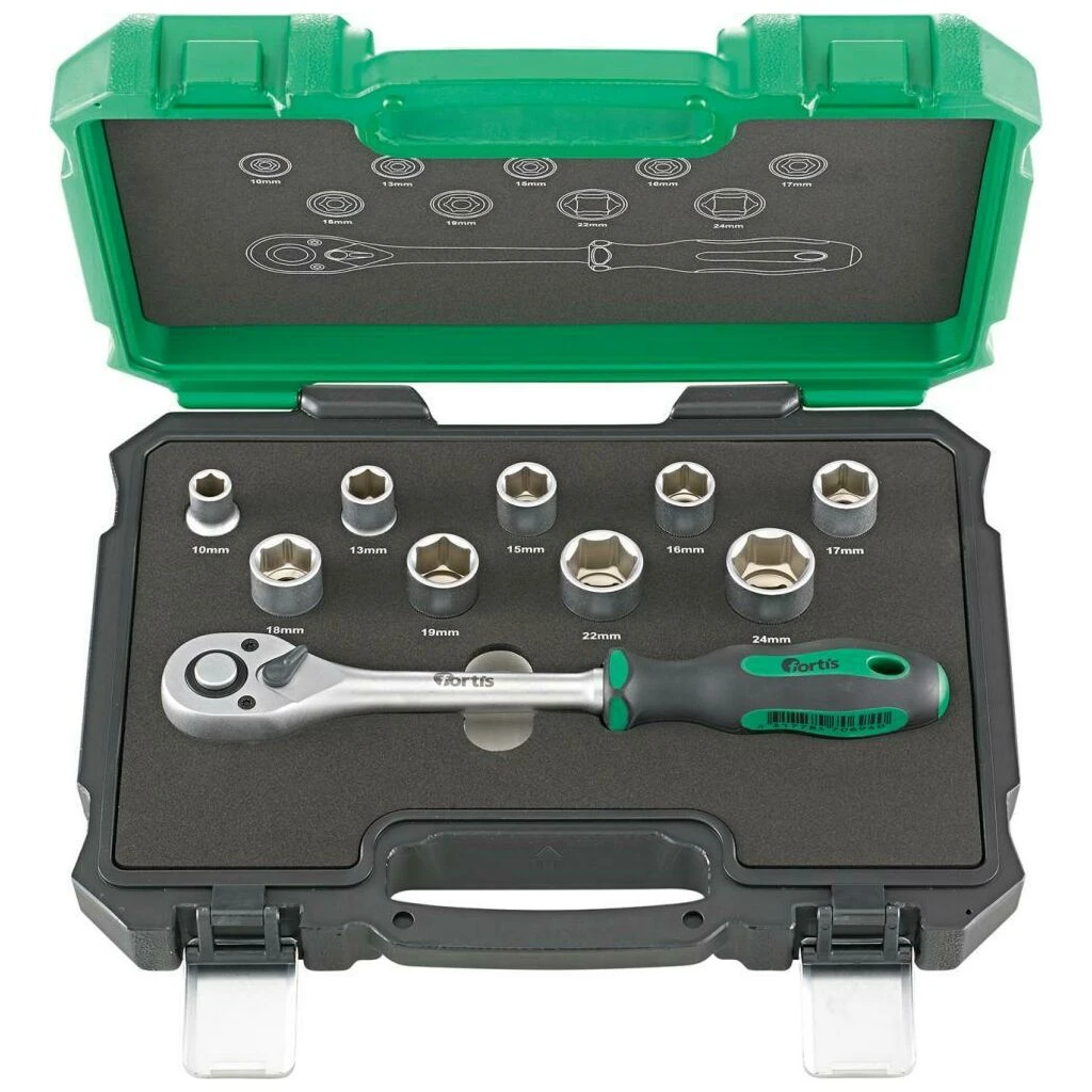 9 6-kant-Steckschlüssel-Einsätze 10; 13; 15; 16; 17; 18; 19; 22; 24 mm