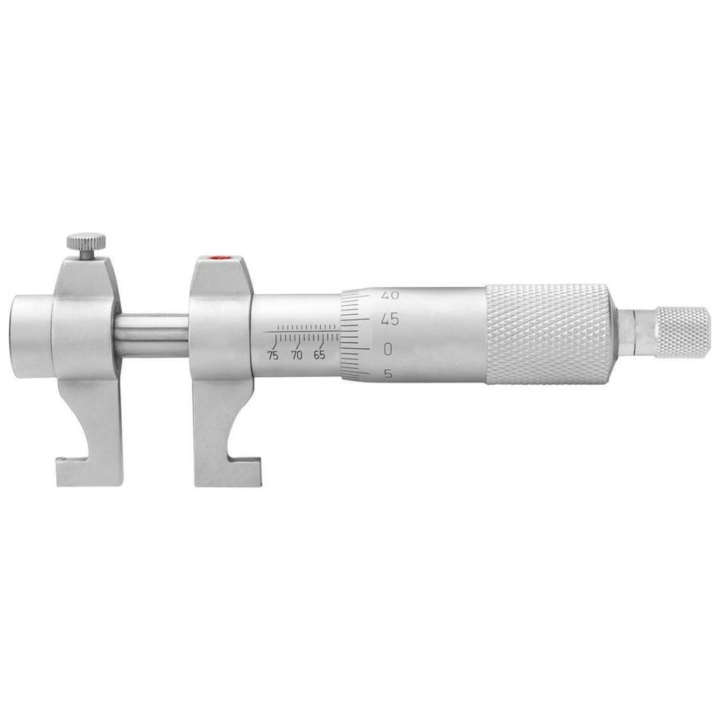 Ausführung: Ableseteile matt verchromt, Messflächen hartmetallbestückt und feinst geläppt, Messkraftregelung durch Gefühlsratsche. Lieferung im Kunststoffkasten.