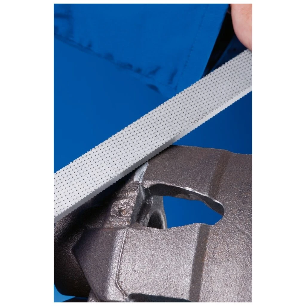 Gefräste Feilen von PFERD eignen sich besonders gut zum groben Zerspanen. Durch die aggressive, gefräste Zahnform mit großen Spankammern setzen sich die Zähne nicht zu. Rechteckige Feile mit Verzahnung auf drei Seiten. Ausführung mit Angel. Flache Seiten schrägverzahnt mit Spanbrecher, hohe Kante gerade verzahnt. Zur Bearbeitung rechtwinkliger Geometrien geeignet. Schräge Verzahnung für universelle Schrupp- und Schlichtarbeiten an weichen Metallen. Durch die gefräste Zahnform mit großen Spankammern setzen sich die Zähne nicht zu. Diese gefrästen Feilblätter werden in Industrieverpackungen geliefert.