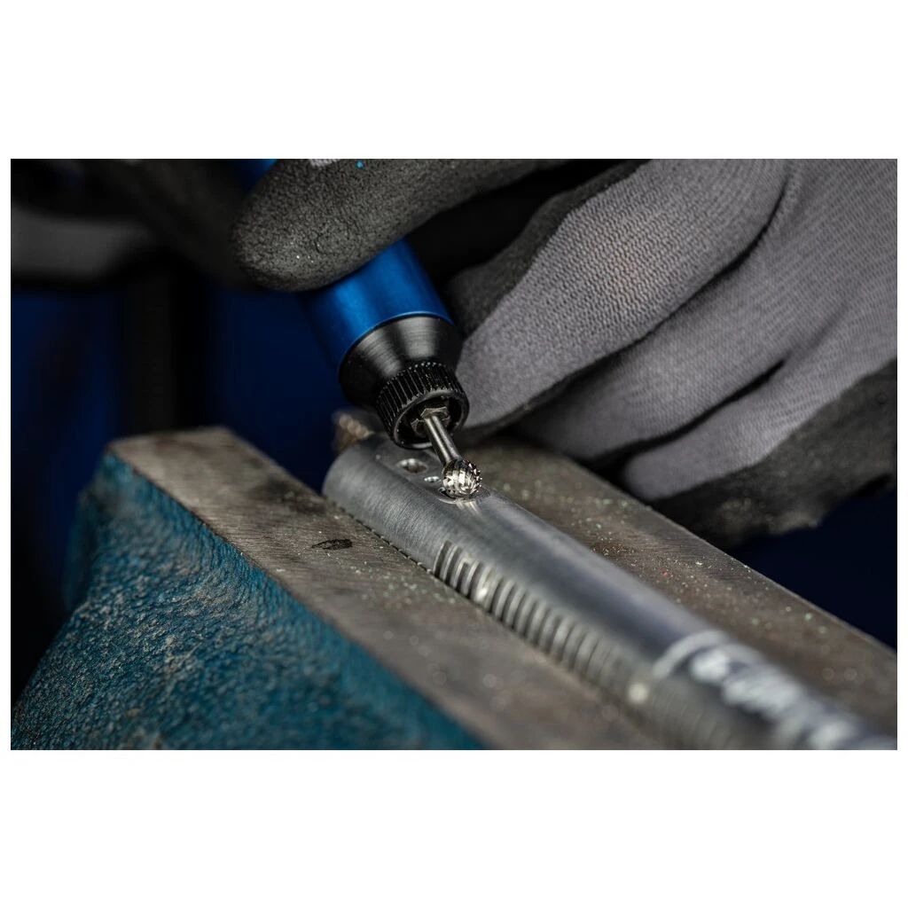 Zahnung 3 PLUS ist kreuzverzahnt und eignet sich besonders gut zur Zerspanung von Gusseisen, Stahl, Edelstahl (INOX), Nickelbasis- und Titanlegierungen. Sie zeichnet sich durch einen hohen Materialabtrag aus. Hartmetallfrässtifte für universelle Anwendungen eignen sich zur Fein- und Grobzerspanung auf den wichtigsten industriell verwendeten Werkstoffen. Sie bieten eine gute Zerspanungsleistung und können werkstoffübergreifend eingesetzt werden. Kugelförmiger Frässtift nach DIN 8032 mit Verzahnung nach DIN 8033.