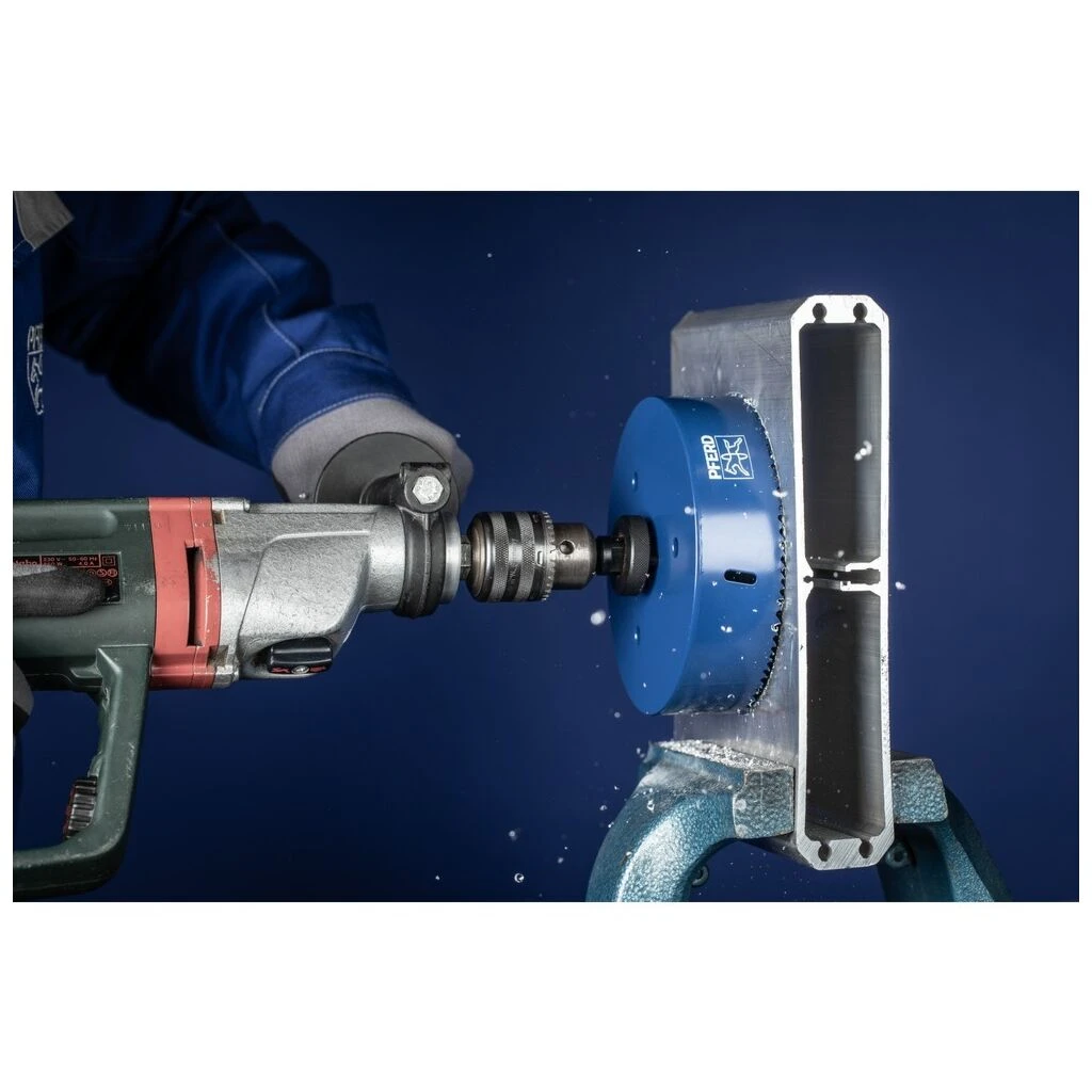 - Komfortables Zentrieren und Führen der Lochsäge durch den auswechselbaren HSS-Zentrierbohrer.