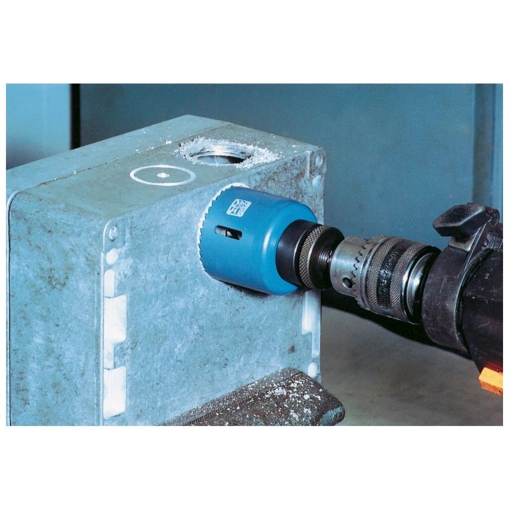 - Komfortables Zentrieren und Führen der Lochsäge durch den auswechselbaren HSS-Zentrierbohrer.