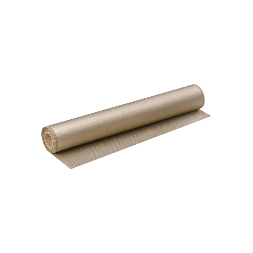 bis 1300°C kurzfristig, Silikatgewebe mit beidseitiger Vermiculite-Beschichtung, goldbraun, weich, flexibel, Gewicht ca. 1250g/m², Stärke ca. 1,4 mm, Breite ca. 900mm, Rolle à 50lfm, Europäischer Brandschutztest durch MPA-Dresden gemäß DIN EN 13501-1, nicht brennbar, A1