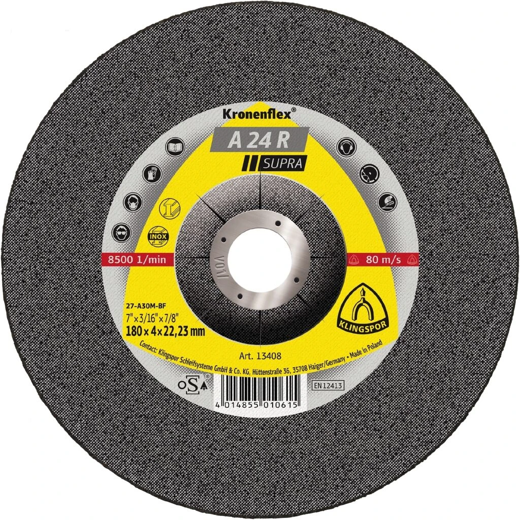 | Ausführung | 100x4x16mm gekröpft, 100x6x16mm gekröpft, 115x4x22,23mm gekröpft, 115x6x22,23mm gekröpft, 125x4x22,23mm gekröpft, 125x6x22,23mm gekröpft, 150x6x22,23mm gekröpft, 180x10x22,23mm gekröpft, 180x4x22,23mm gekröpft, 180x7x22,23mm gekröpft, 180x8x22,23mm gekröpft, 230x4x22,23mm gekröpft, 230x6x22,23mm gekröpft, 230x8x22,23mm gekröpft |