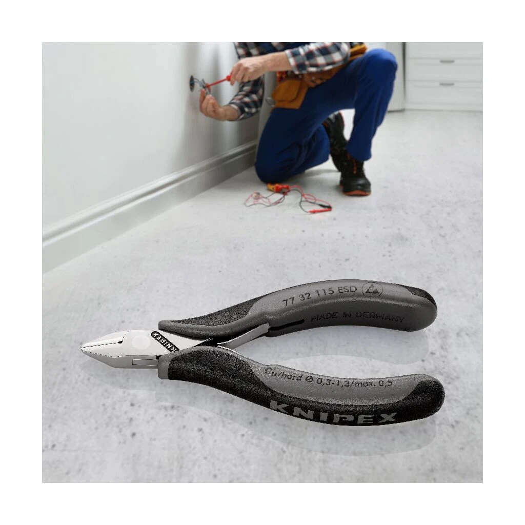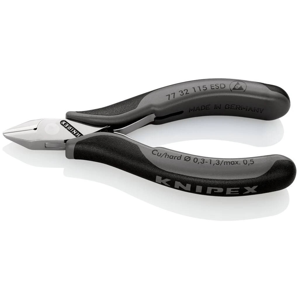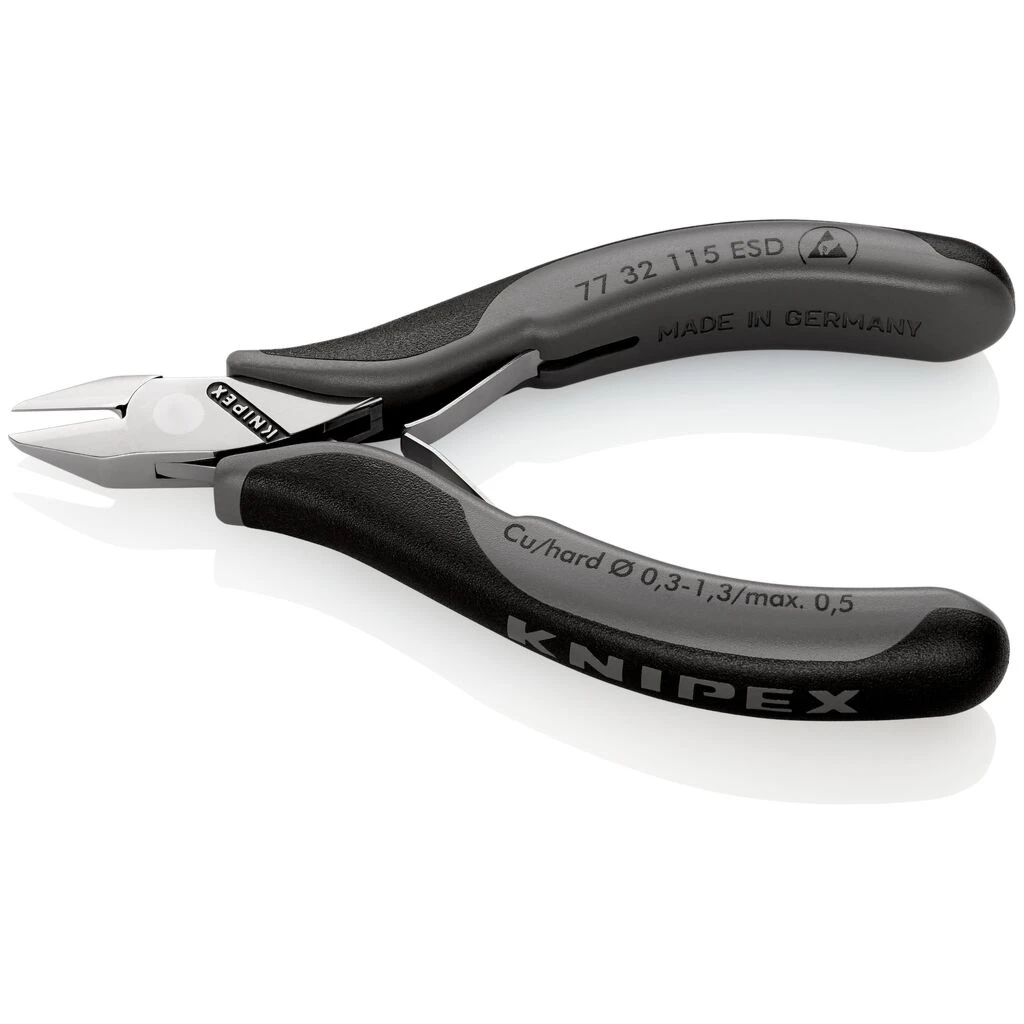 Für feine Schneidarbeiten, z. B. in Elektronik und Feinmechanik. Griffe elektrisch ableitend – dissipativ. Stabiles, durchgestecktes und spielfreies Gelenk. Reibungsarme Doppelfeder für ein sanftes und gleichmäßiges Öffnen. Die Spiegelpolitur bietet in Verbindung mit einem feinen Ölfilm einen guten Rostschutz – keine Störungen im Schaltkreis durch abblätternde Chromteile. Schneiden zusätzlich induktiv gehärtet, Schneidenhärte ca. 62 HRC. Griffe mit zweifarbigen Mehrkomponenten-Hüllen schwarz/grau. spitzer Kopf, mit kleiner Facette. Schneidenhärte ca. 60 HRC.