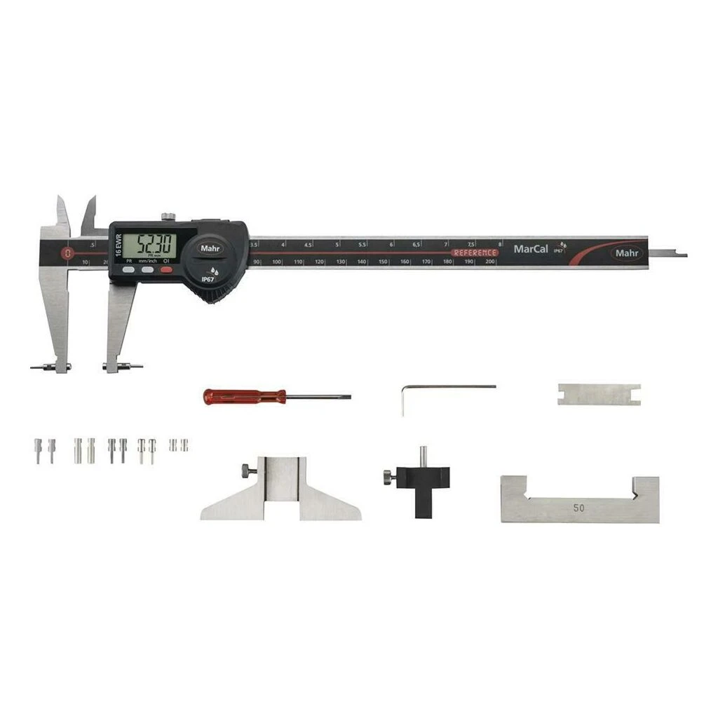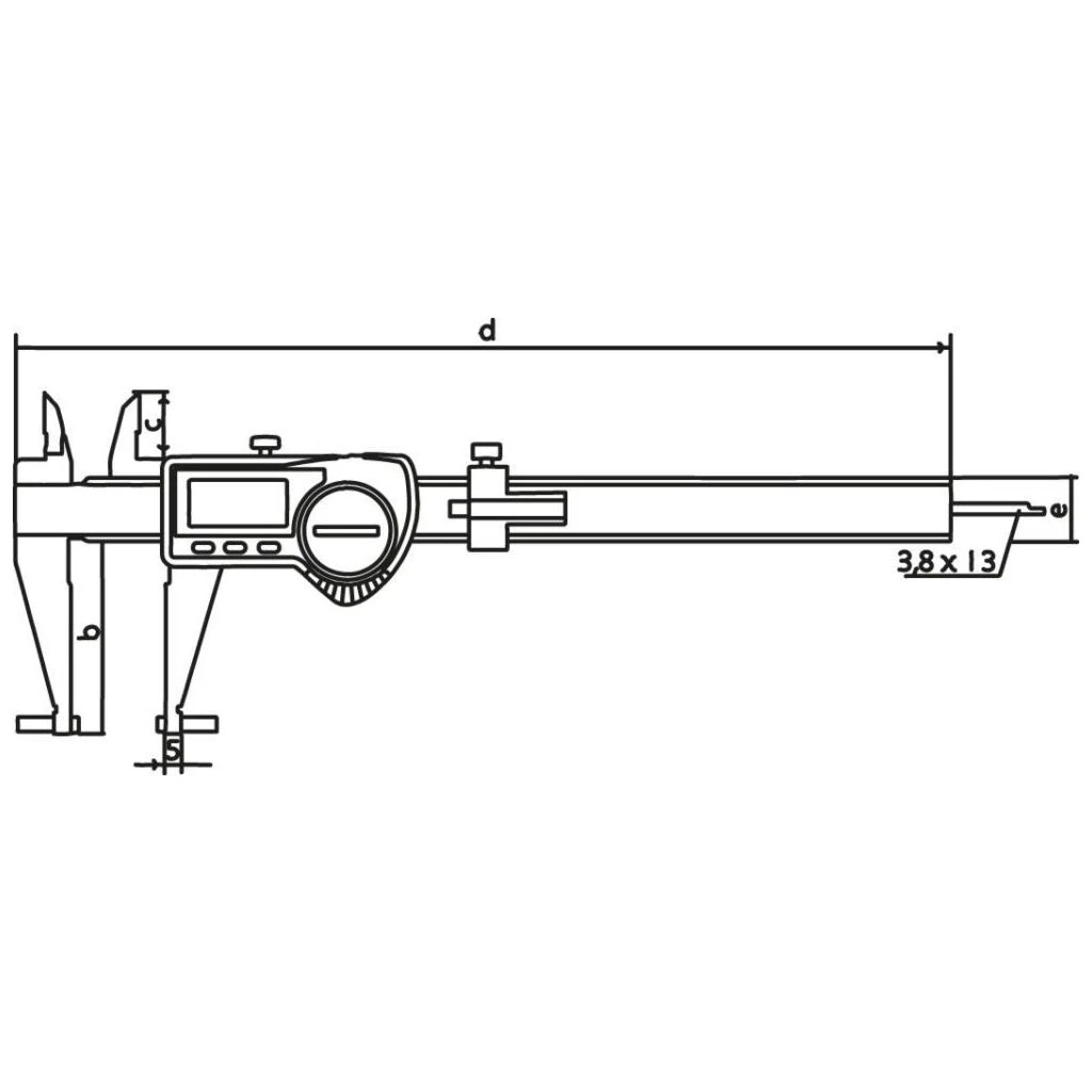 Ausführung: Aus rostfreiem Stahl, gehärtet, geläppte Führungsbahnen, mit Feststellschraube, Ziffernhöhe der LCD-Anzeige 11 mm, erhöhte Führungsbahnen zum Schutz des Maßstabs, Schmutzabstreifer im Schieber, Datenübertragung über integriertem Funksystem. Lieferung mit Batterie CR2032, 3 V, im Etui.