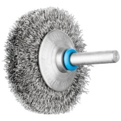 Hervorragend für mittelschwere Bürstarbeiten wie Entgraten, Reinigen und Entfernen von Anlauffarben geeignet. Für die Bearbeitung von Edelstahl (INOX) bietet PFERD zusätzlich zu Bürsten mit Edelstahlbesatz auch Bürsten in der Ausführung INOX-TOTAL an. Sie sind insbesondere für den Einsatz in extrem kritischem Umfeld geeignet. Um die besonderen Ansprüche bei der Bearbeitung von Edelstahl (INOX) zu erfüllen, verwendet PFERD bei allen INOX-Bürsten die Drahtqualität 1.4310 (V2A). Praxiserfahrungen aus dem industriellen Umfeld bestätigen, dass sie eine sehr gute Korrosionsbeständigkeit bei optimaler Standzeit aufweist. Alle PFERD-Bürsten mit INOX-Besatz sind blau gekennzeichnet und für den Einsatz auf allen Edelstählen (INOX), wie z. B. V4A, geeignet. Die Drahtqualität 1.4310 neigt bei Kaltverfestigung zu ferromagnetischem Verhalten, das heißt, sie wird von Magneten angezogen.;Ursache hierfür ist eine Gefügeveränderung, die durch Verformung, z. B. während des Drahtziehens, hervorgerufen wird. Dies hat keinen Einfluss auf die Qualität und Korrosionsbeständigkeit des INOX-Besatzes. Er behält seine korrosionsbeständigen Eigenschaften. Edelstahldraht (INOX) hält Temperaturen bis 450 °C stand.
