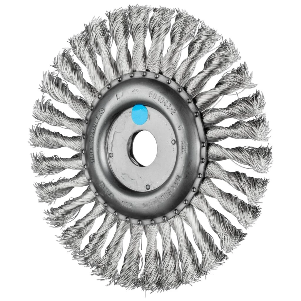 Um die besonderen Ansprüche bei der Bearbeitung von Edelstahl (INOX) zu erfüllen, verwendet PFERD bei allen INOX-Bürsten die Drahtqualität 1.4310 (V2A). Praxiserfahrungen aus dem industriellen Umfeld bestätigen, dass sie eine sehr gute Korrosionsbeständigkeit bei optimaler Standzeit aufweist. Alle PFERD-Bürsten mit INOX-Besatz sind blau gekennzeichnet und für den Einsatz auf allen Edelstählen (INOX), wie z. B. V4A, geeignet. Die Drahtqualität 1.4310 neigt bei Kaltverfestigung zu ferromagnetischem Verhalten, das heißt, sie wird von Magneten angezogen.;Ursache hierfür ist eine Gefügeveränderung, die durch Verformung, z. B. während des Drahtziehens, hervorgerufen wird. Dies hat keinen Einfluss auf die Qualität und Korrosionsbeständigkeit des INOX-Besatzes. Er behält seine korrosionsbeständigen Eigenschaften. Edelstahldraht (INOX) hält Temperaturen bis 450 °C stand. Aggressiv arbeitende Bürste. Für schwere Bürstarbeiten im Metallbau wie Entzundern, Entrosten, Entgraten, Putzen von Schweißnähten und Entfernen von Kleberresten und Schweißspritzern geeignet.