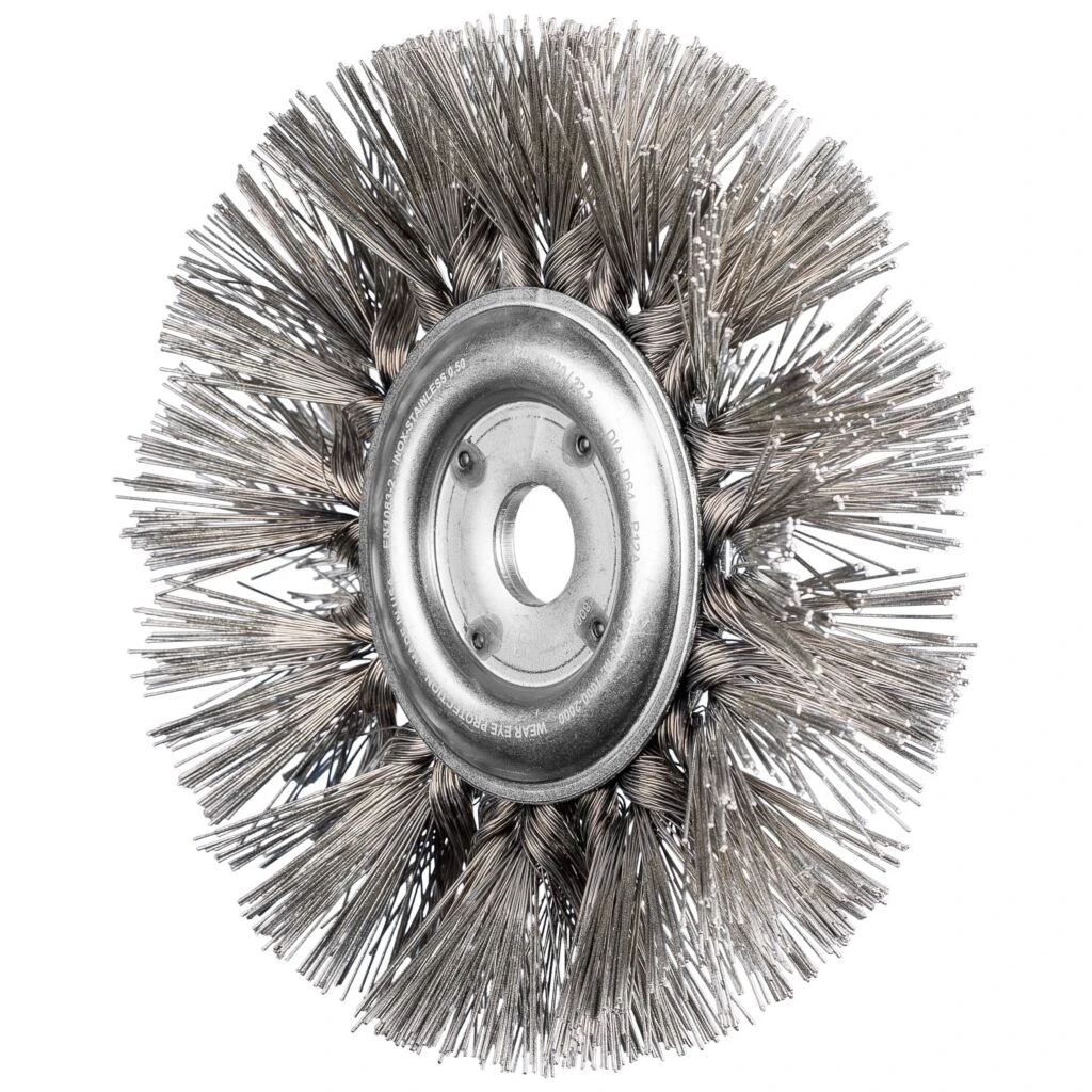 Aggressive und stabile Bürste, die hoher mechanischer Belastung standhält. Für alle schweren Bürstarbeiten im stationären und automatisierten Einsatz, z. B. Entgratarbeiten, geeignet. Bürsten mit dem Besatzmaterial INOX DIA eignen sich für Anwendungen, die besondere Anforderungen an die Aggressivität der Bürste stellen. Sie sind vor allem auf Materialien mit hoher Werkstofffestigkeit einsetzbar. Edelstahldraht (INOX) Diamant (DIA) hält Temperaturen bis 450 °C stand.
