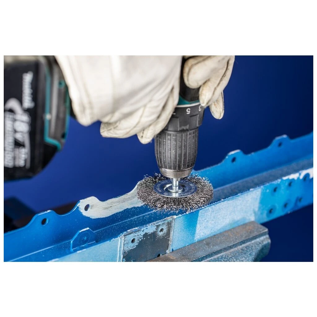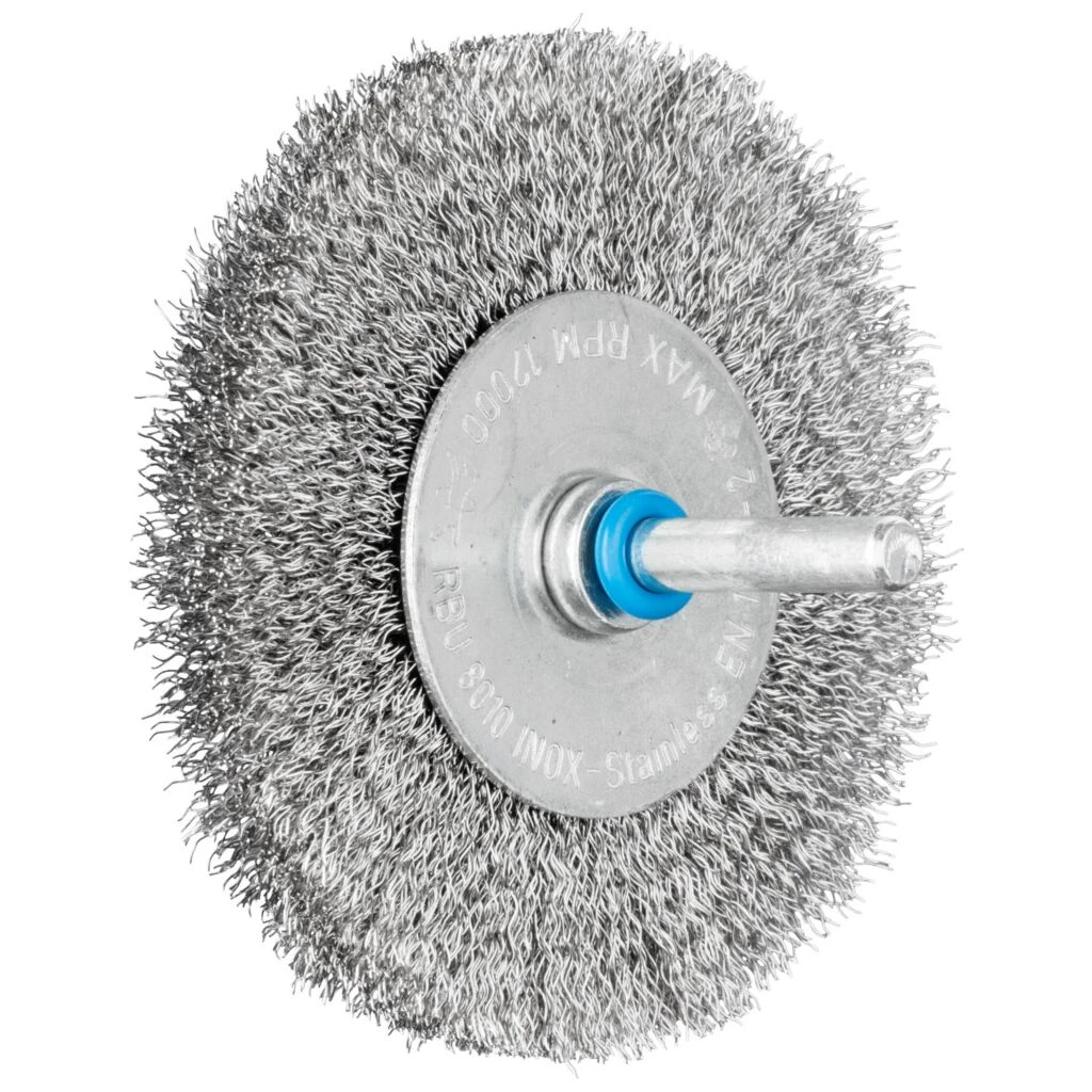 Universell zum Reinigen, Entrosten, Glätten, Putzen von Schweißnähten, leichten Entgraten und Entfernen von Korrosion und Lacken einsetzbar. Um die besonderen Ansprüche bei der Bearbeitung von Edelstahl (INOX) zu erfüllen, verwendet PFERD bei allen INOX-Bürsten die Drahtqualität 1.4310 (V2A). Praxiserfahrungen aus dem industriellen Umfeld bestätigen, dass sie eine sehr gute Korrosionsbeständigkeit bei optimaler Standzeit aufweist. Alle PFERD-Bürsten mit INOX-Besatz sind blau gekennzeichnet und für den Einsatz auf allen Edelstählen (INOX), wie z. B. V4A, geeignet. Die Drahtqualität 1.4310 neigt bei Kaltverfestigung zu ferromagnetischem Verhalten, das heißt, sie wird von Magneten angezogen.;Ursache hierfür ist eine Gefügeveränderung, die durch Verformung, z. B. während des Drahtziehens, hervorgerufen wird. Dies hat keinen Einfluss auf die Qualität und Korrosionsbeständigkeit des INOX-Besatzes. Er behält seine korrosionsbeständigen Eigenschaften. Edelstahldraht (INOX) hält Temperaturen bis 450 °C stand.