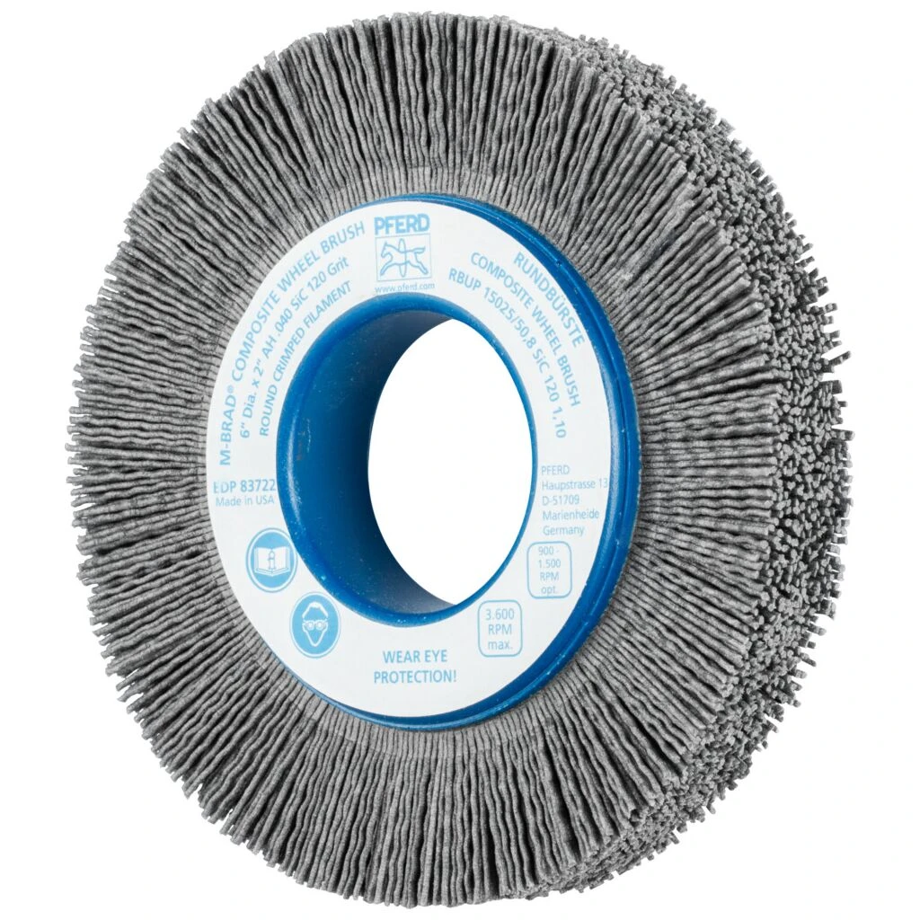 Besonders aggressiv arbeitende Bürste. Aufgrund des Kunststoffbesatzes besonders gut zum Entgraten von schwierig zu bearbeitenden Bauteilen wie Zylinderköpfen oder Zahnrädern sowie zur Oberflächenbearbeitung geeignet. Speziell für den industriellen Einsatz entwickelt. Composite-Bürsten von PFERD sind speziell für den industriellen, automatisierten Einsatz entwickelt. Sie eignen sich für eine Vielzahl von Bearbeitungsaufgaben und sind durch ihre variablen Aufspannmöglichkeiten auf vielen verschiedenen Antriebsmaschinen einsetzbar. Dies bietet den Vorteil, dass die Produktion und Nacharbeiten des Werkstückes auf der selben Maschine durchgeführt werden können. Hierdurch lassen sich lohnintensive, manuelle Arbeiten reduzieren und reproduzierbare Ergebnisse mit kurzen Taktzeiten erzielen. Für einen effizienten Einsatz müssen zahlreiche Anwendungsparameter wie z. B. Bearbeitungszeit und Vorschub aufeinander abgestimmt und die dazu passende Bürste ausgewählt werden. Bürsten mit Siliciumcarbid (SiC) eignen sich besonders gut für Entgratarbeiten und zur Oberflächenverbesserung. Kunststoffbesatz hält Temperaturen bis 220° C stand.