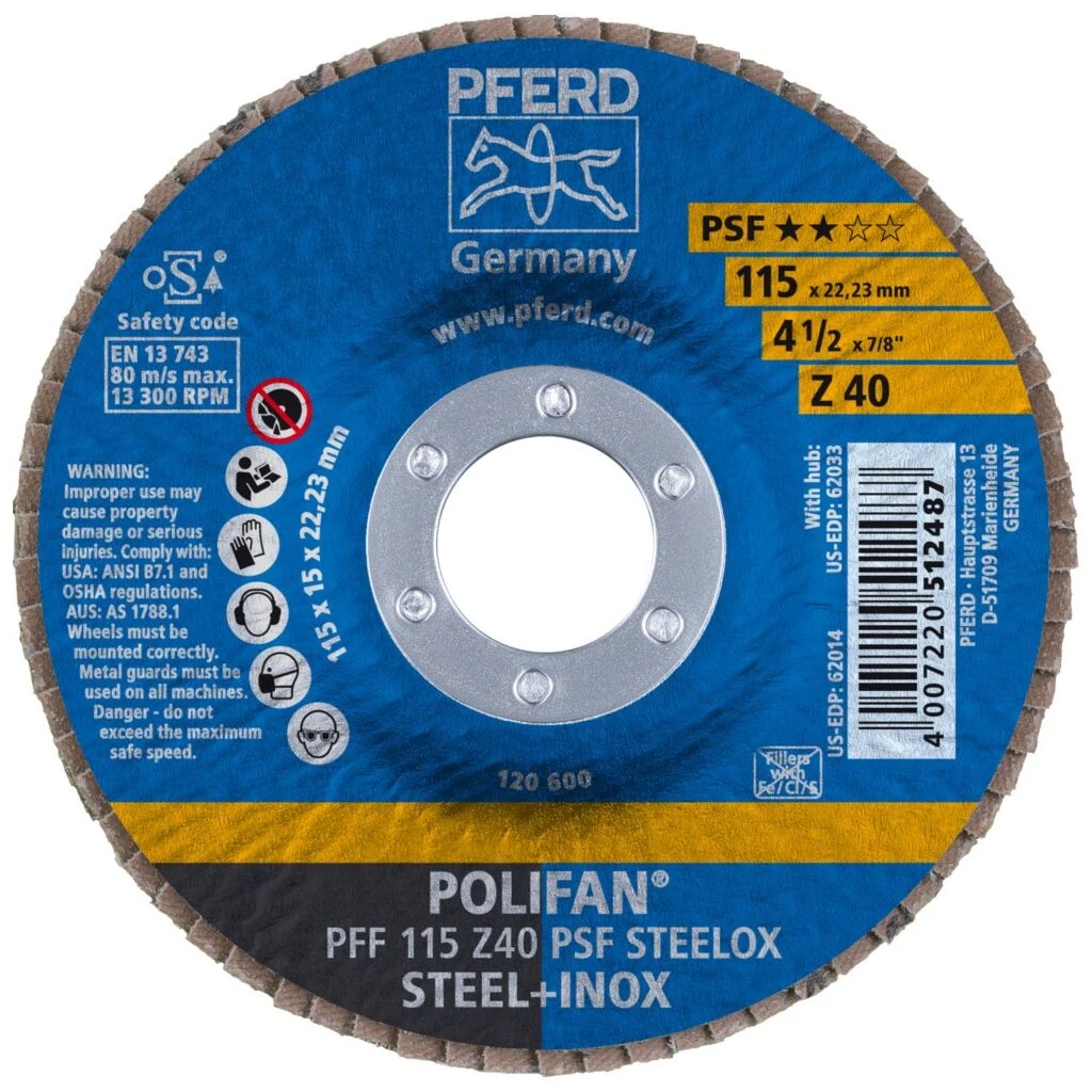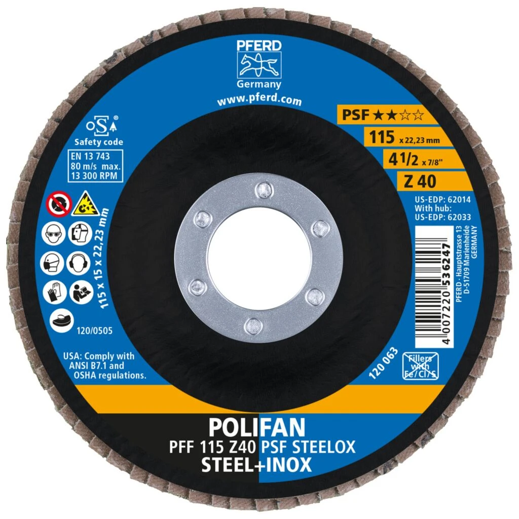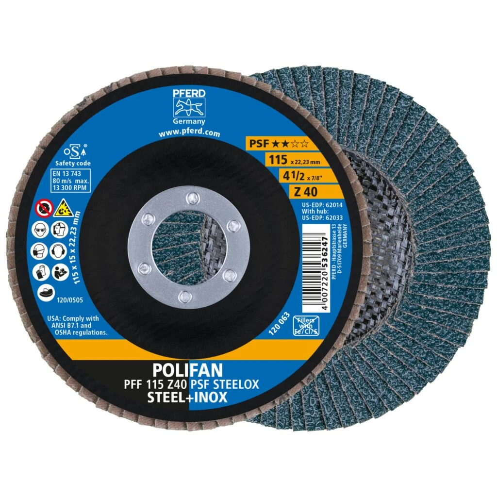 Das Einstiegsprogramm der Universal-Linie PSF beinhaltet solide Werkzeuge für die Bearbeitung der gängigsten Werkstoffe. Werkzeuge der Universal-Linie PSF erzielen gute Arbeitsergebnisse bei hoher Wirtschaftlichkeit. POLIFAN-Fächerscheibe für Stahl und Edelstahl (INOX) mit aggressiver Zerspanungsleistung und guter Standzeit.