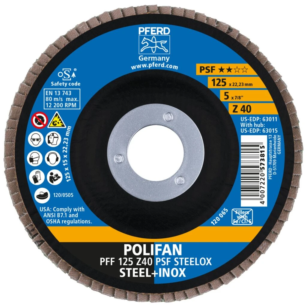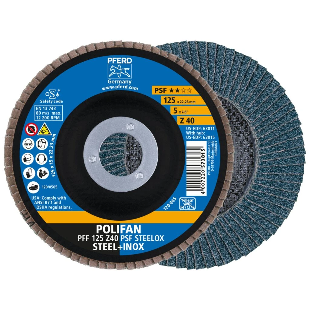 Das Einstiegsprogramm der Universal-Linie PSF beinhaltet solide Werkzeuge für die Bearbeitung der gängigsten Werkstoffe. Werkzeuge der Universal-Linie PSF erzielen gute Arbeitsergebnisse bei hoher Wirtschaftlichkeit. POLIFAN-Fächerscheibe für Stahl und Edelstahl (INOX) mit aggressiver Zerspanungsleistung und guter Standzeit.