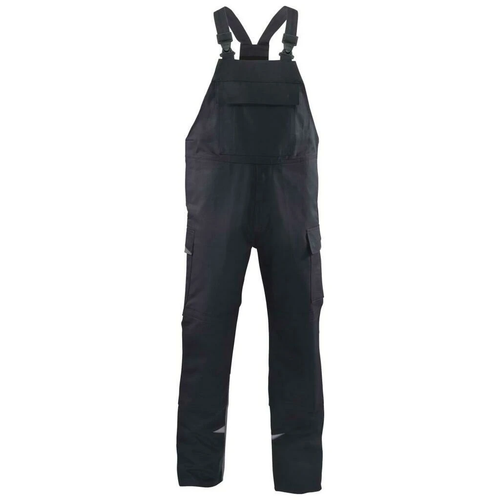 Leichte Schweißerlatzhose mit folgender Ausstattung: Träger mit Stretcheinsatz, Latztasche mit Patte, Druckknöpfe und Stifttasche, Schlitz mit Reißverschluss, Bund weitenverstellbar durch seitliche Knopfleiste, seitliche 2 senkrechte Eingrifftaschen, Knietasche mit Klett schließbar für Polster, rechts schräge Zollstocktasche mit Patte und Druckknopf, links Cargotasche mit Patte und Druckknöpfen, Gesäßtasche rechts mit Patte und Druckknöpfen, Applikationen an den Beinen.