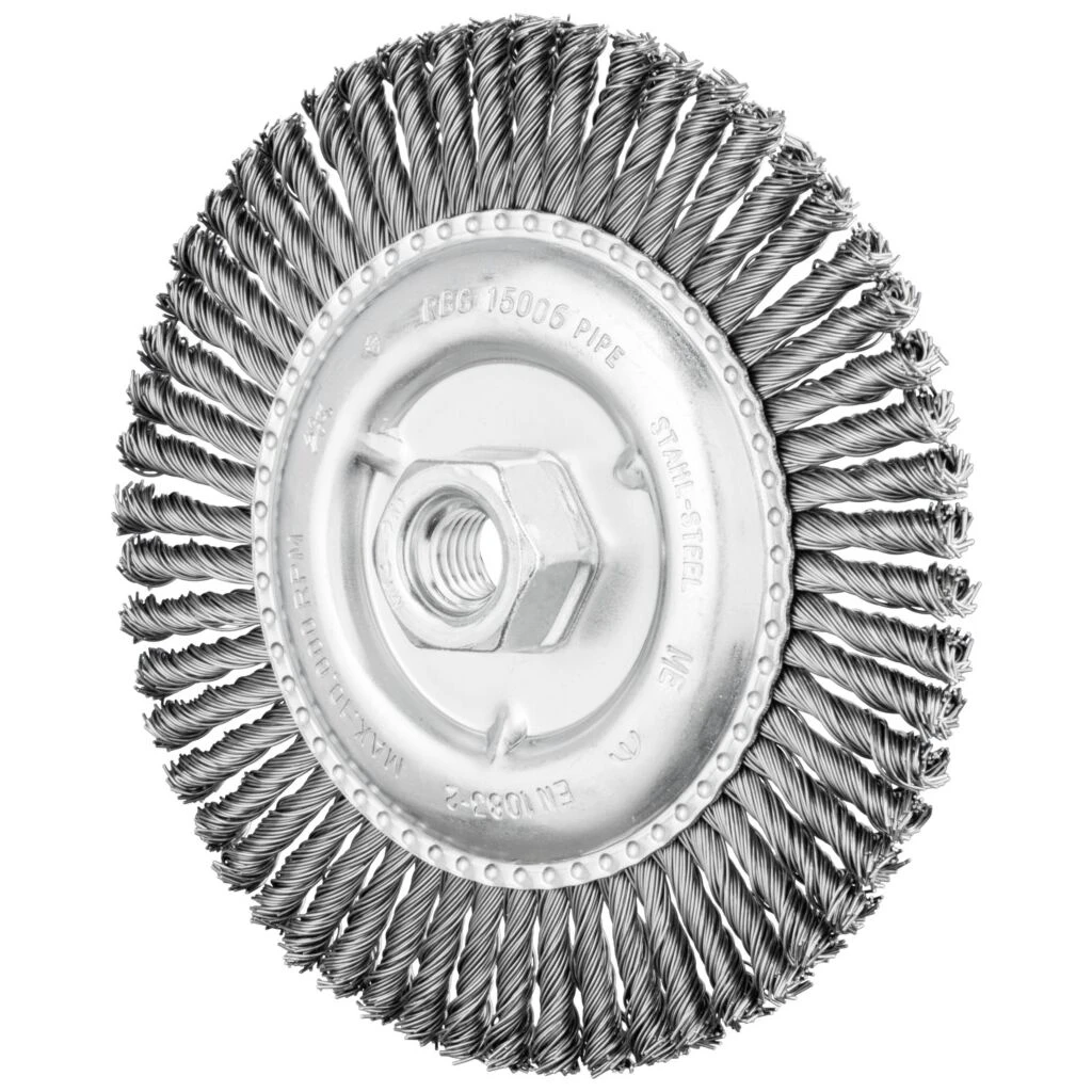 - Aggressiver Bürsteffekt durch hohe Steifigkeit der Drahtzöpfe.
