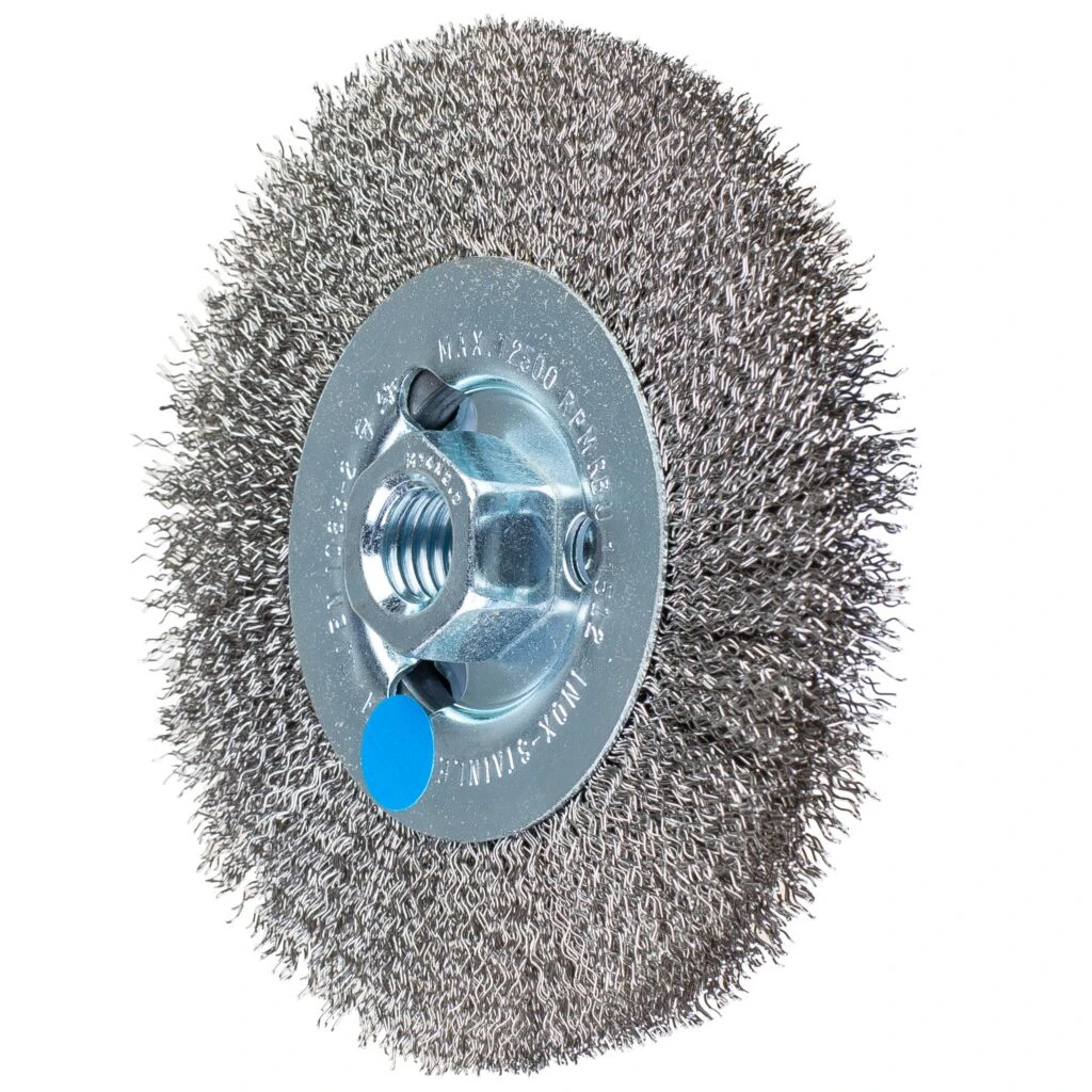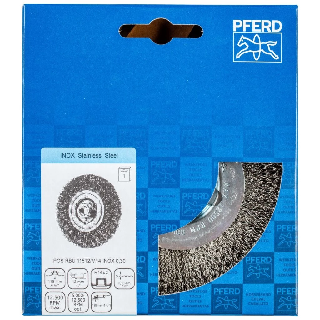 Für mittelschwere Bürstarbeiten wie Entrosten und Putzen von Schweißnähten sowie leichte Entgratarbeiten geeignet. Um die besonderen Ansprüche bei der Bearbeitung von Edelstahl (INOX) zu erfüllen, verwendet PFERD bei allen INOX-Bürsten die Drahtqualität 1.4310 (V2A). Praxiserfahrungen aus dem industriellen Umfeld bestätigen, dass sie eine sehr gute Korrosionsbeständigkeit bei optimaler Standzeit aufweist. Alle PFERD-Bürsten mit INOX-Besatz sind blau gekennzeichnet und für den Einsatz auf allen Edelstählen (INOX), wie z. B. V4A, geeignet. Die Drahtqualität 1.4310 neigt bei Kaltverfestigung zu ferromagnetischem Verhalten, das heißt, sie wird von Magneten angezogen.;Ursache hierfür ist eine Gefügeveränderung, die durch Verformung, z. B. während des Drahtziehens, hervorgerufen wird. Dies hat keinen Einfluss auf die Qualität und Korrosionsbeständigkeit des INOX-Besatzes. Er behält seine korrosionsbeständigen Eigenschaften. Edelstahldraht (INOX) hält Temperaturen bis 450 °C stand.