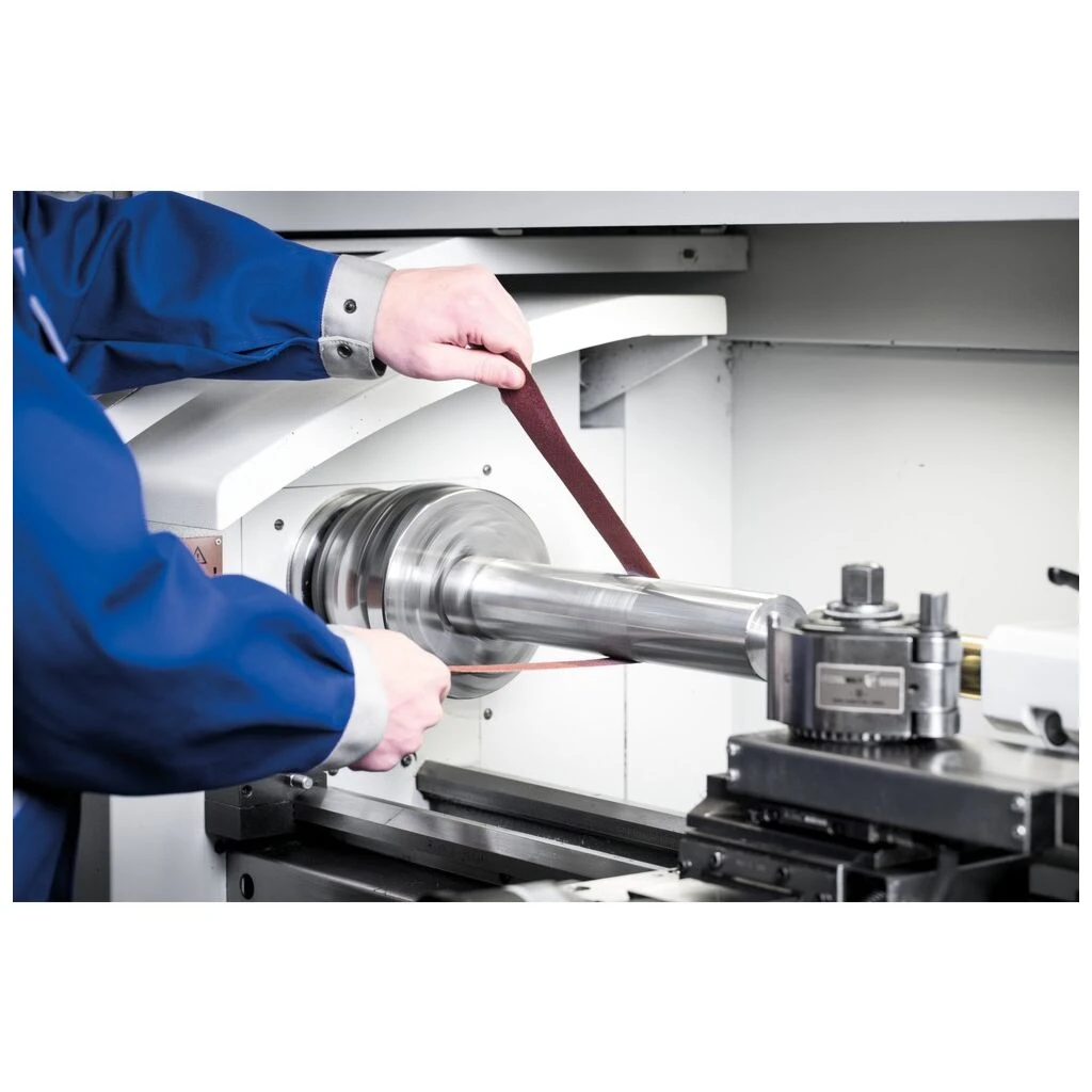 Das Gewebe ist für den universellen Einsatz mit hoher Beanspruchung bei der Bearbeitung von legierten und unlegierten Stählen sowie NE-Metallen geeignet. Der Karton verfügt über eine Abreißkante zum Abtrennen der Schleifbandstücke am Arbeitsplatz. SBR 50 entspricht Form B, ISO 3366.