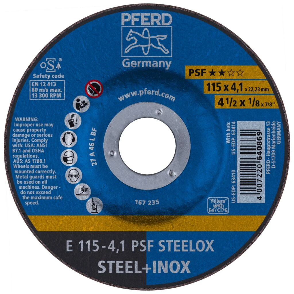 Das Einstiegsprogramm der Universal-Linie PSF beinhaltet solide Werkzeuge für die Bearbeitung der gängigsten Werkstoffe. Werkzeuge der Universal-Linie PSF erzielen gute Arbeitsergebnisse bei hoher Wirtschaftlichkeit. Schruppscheibe für Stahl und Edelstahl (INOX) mit hoher Schleiffreudigkeit und guter Standzeit.