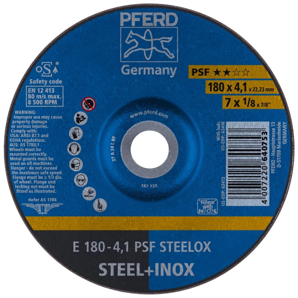 Das Einstiegsprogramm der Universal-Linie PSF beinhaltet solide Werkzeuge für die Bearbeitung der gängigsten Werkstoffe. Werkzeuge der Universal-Linie PSF erzielen gute Arbeitsergebnisse bei hoher Wirtschaftlichkeit. Schruppscheibe für Stahl und Edelstahl (INOX) mit hoher Schleiffreudigkeit und guter Standzeit.