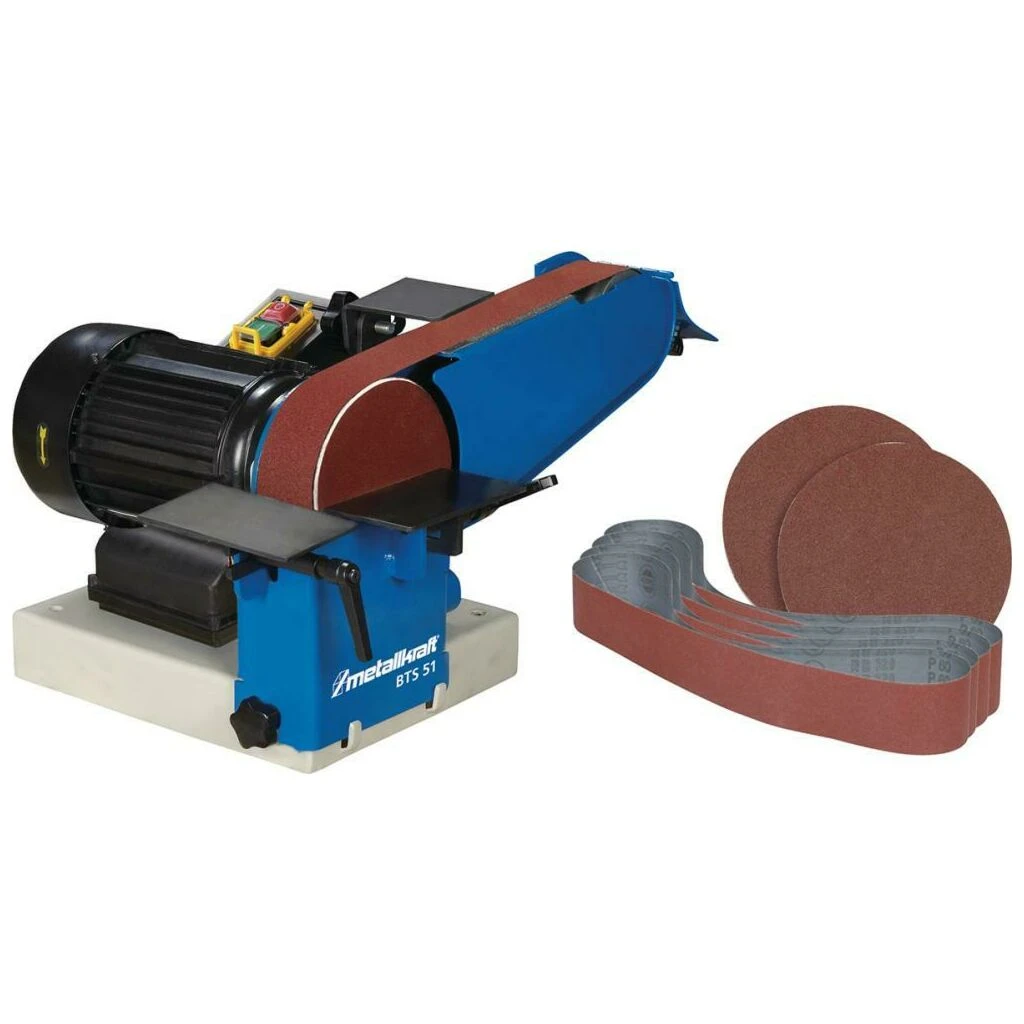 Lieferung: Mit 11 Schleifbänder K 80, 10 Schleifbänder K 100, 11 Schleifblätter K 80, 10 Schleifblätter K 100, Klettauflage Ø 150 mm.