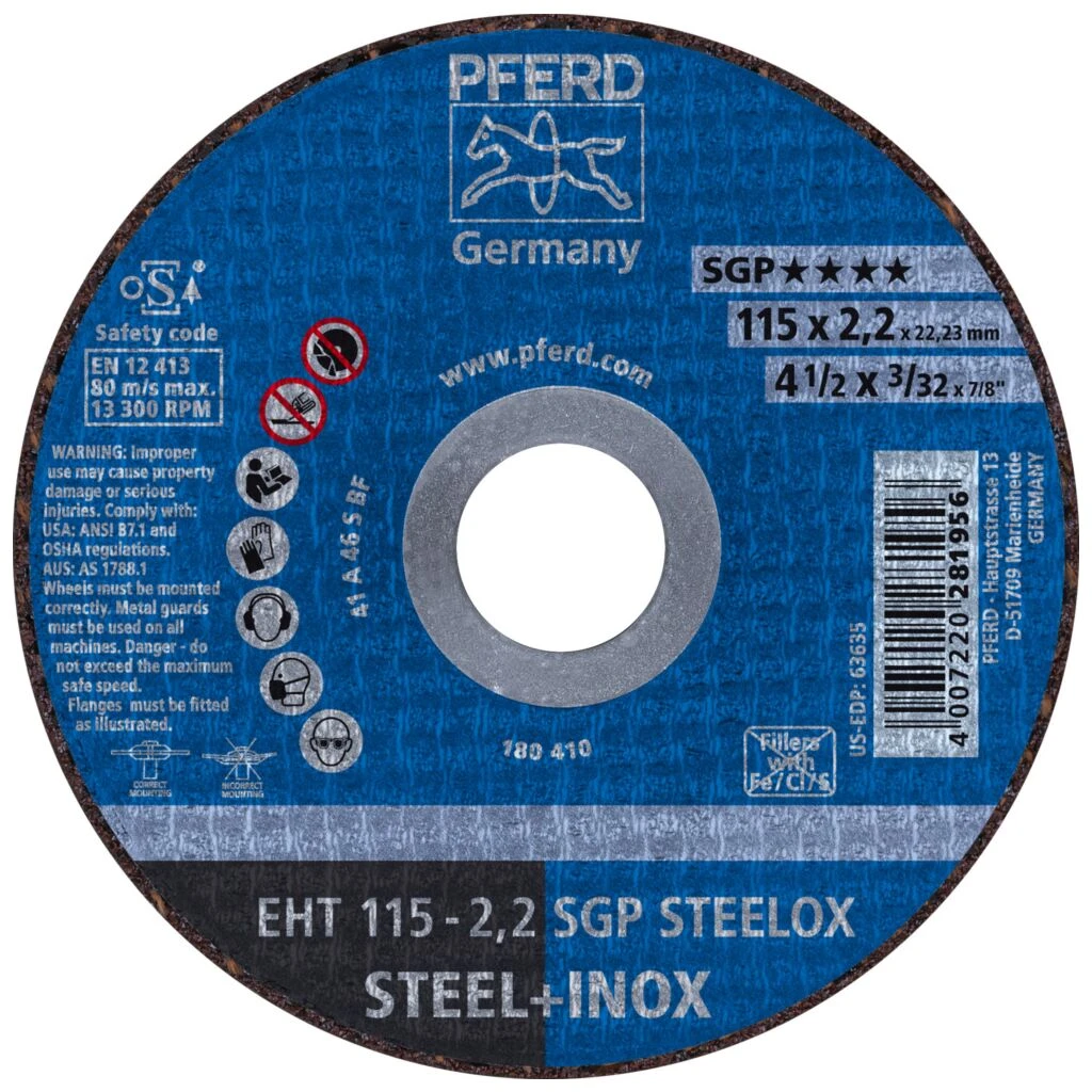 Werkzeuge der Spezial-Linie SGP sind speziell für besondere Aufgabenstellungen entwickelt und bieten dem Anwender entscheidende Vorteile gegenüber herkömmlichen Produkten. Weiter umfasst die Spezial-Linie SGP Werkzeuge, die aufgrund ihrer besonders hohen Leistung im Einsatz ultimative Wirtschaftlichkeit bieten. Trennscheibe für Stahl und Edelstahl (INOX) mit hoher Trennleistung und herausragender Standzeit. Speziell optimiert für den Einsatz auf dünnen Blechen und Profilen.