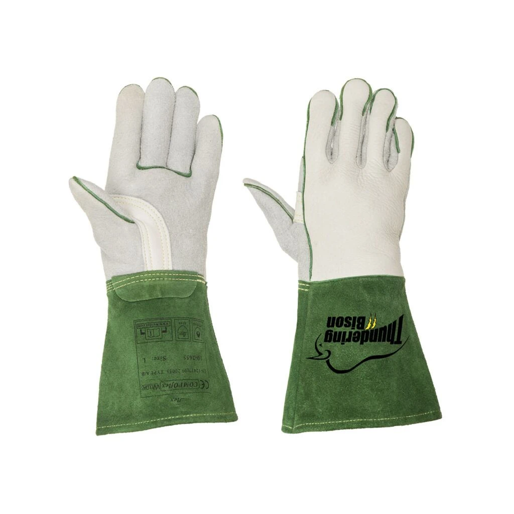 Dieser cm lange Handschuh ist aus echtem Bisonleder hergestellt. Der Rücken ist Spaltleder und mit dem COMFOFLEX®-Futter für Komfort und Hitzeisolation gefüttert. Ohne Chromium 6 gegerbt. Er ist mit 3,4- und 5-fachem Dupont-KEVLAR®-Garn genäht.
