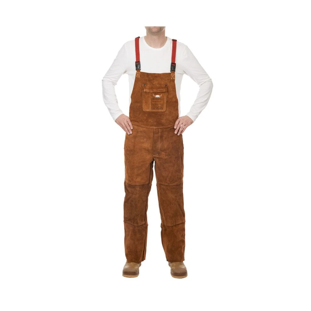 Schweißerlatzhose Lava Brown aus geschmeidigem und widerstandsfähigem Rindspaltleder.