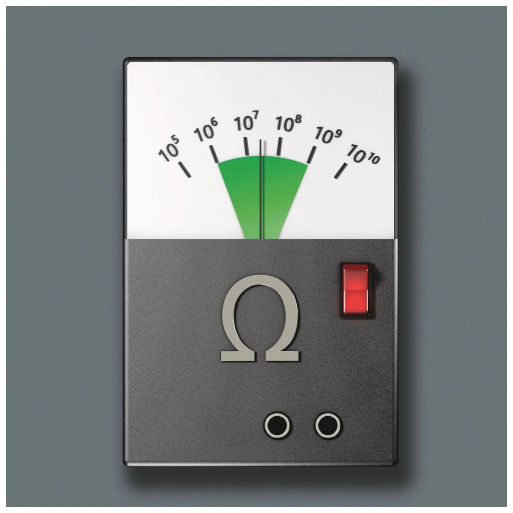 - Der elektrische Oberflächenwiderstand des Wera ESD Materials liegt bei ≤ 109 Ohm. So werden Bauteile vor elektrostatischer Energie und damit verbundenen Schäden sicher geschützt.