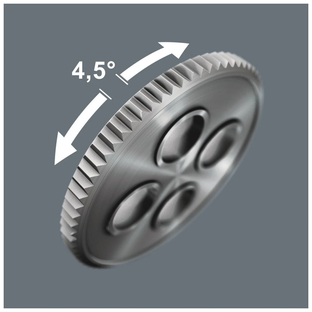 - Die Zyklop VDE-Knarre ermöglicht durch ihre Feinverzahnung mit 80 Zähnen einen kurzen Rückholwinkel von nur 4,5°.